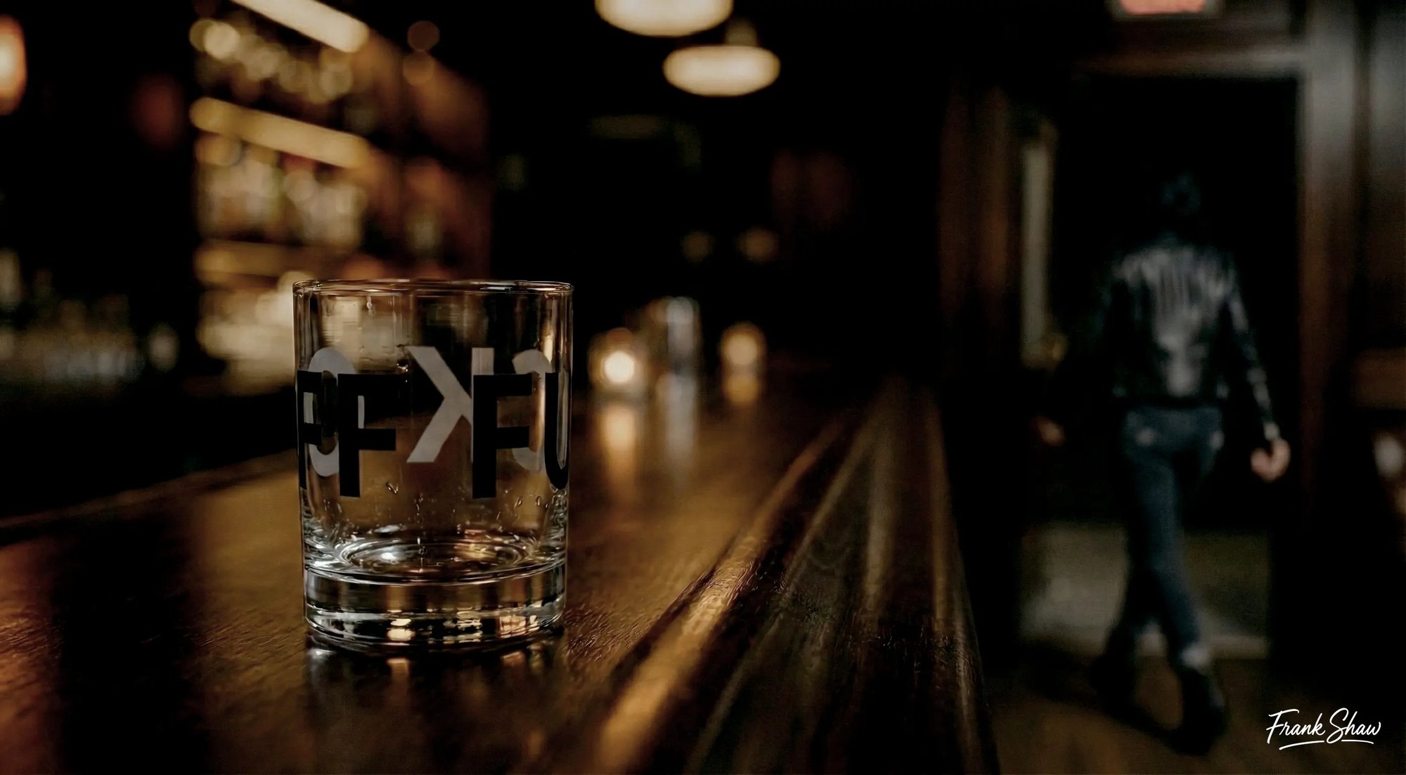 Heavy glass, clean edge, solid in the hand — like a weapon you sip from.